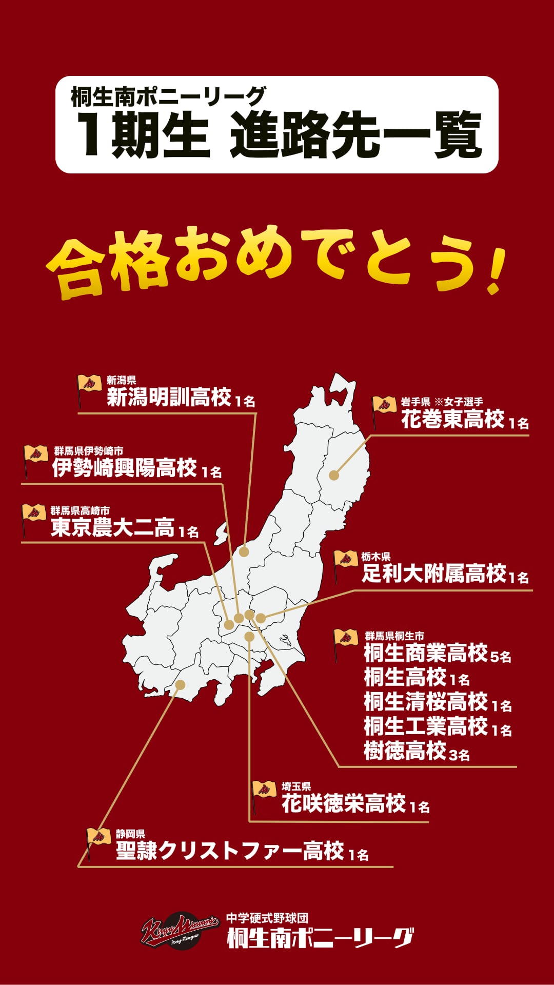 2023年に結成されました「桐生南ポニーリーグ」ですが、第1期生の進路が決定しました。